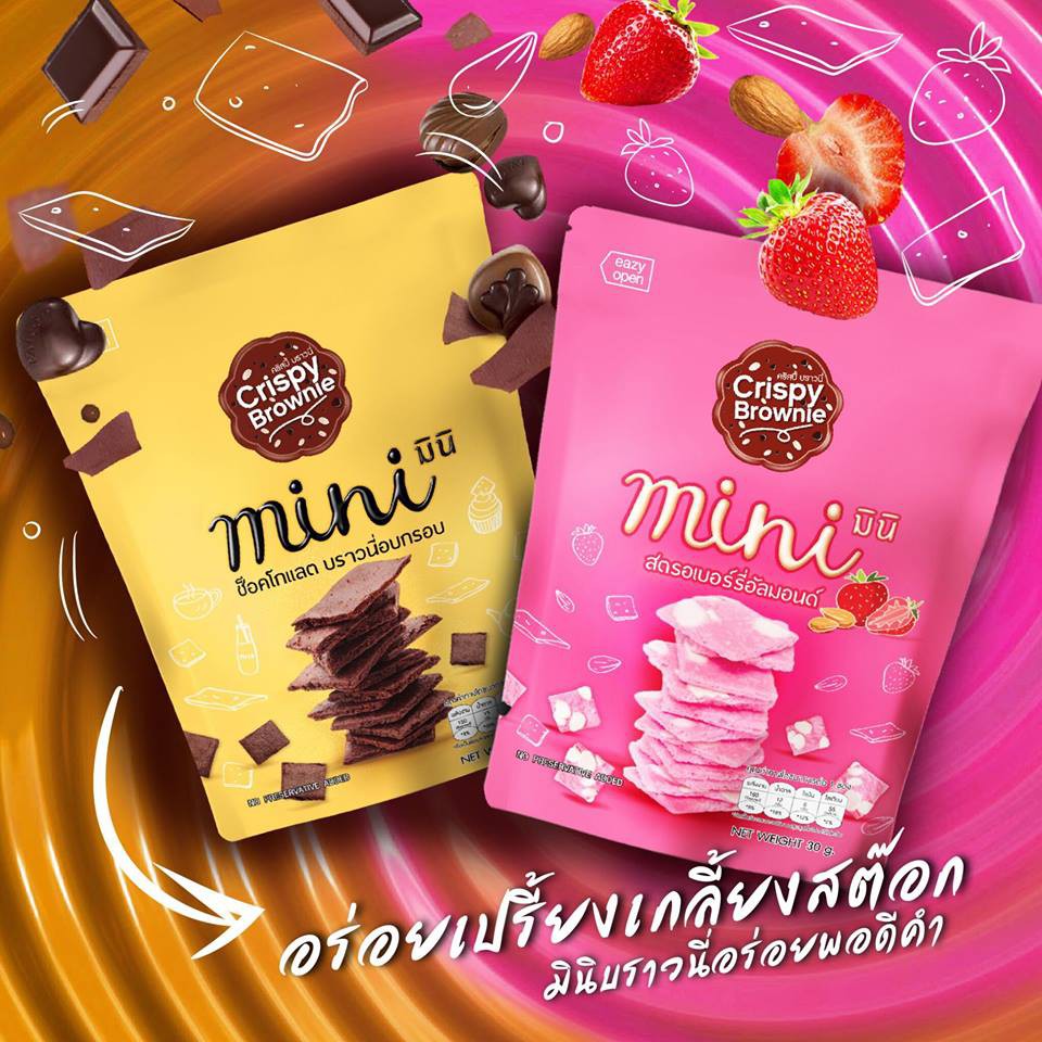 Mini Crispy Brownie 30g. (4ห่อ100บาท) มาแล้วจ้า บราวนี่กรอบที่ขายดีที่สุด บราวนี่อบกรอบ หอมขั้นเทพ มี2รสชาติ -Strawberry Almonds -Chocolate crispybrownie คริสปี้บราวนี่ บราวนี่กรอบ ขนมเด็ก ขนมมีประโยชน์ ขนมอร่อย